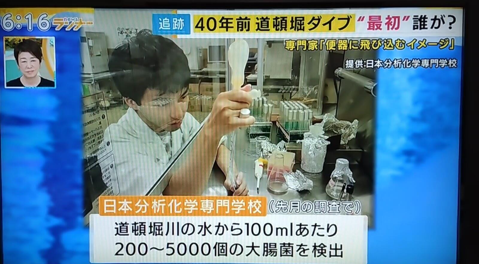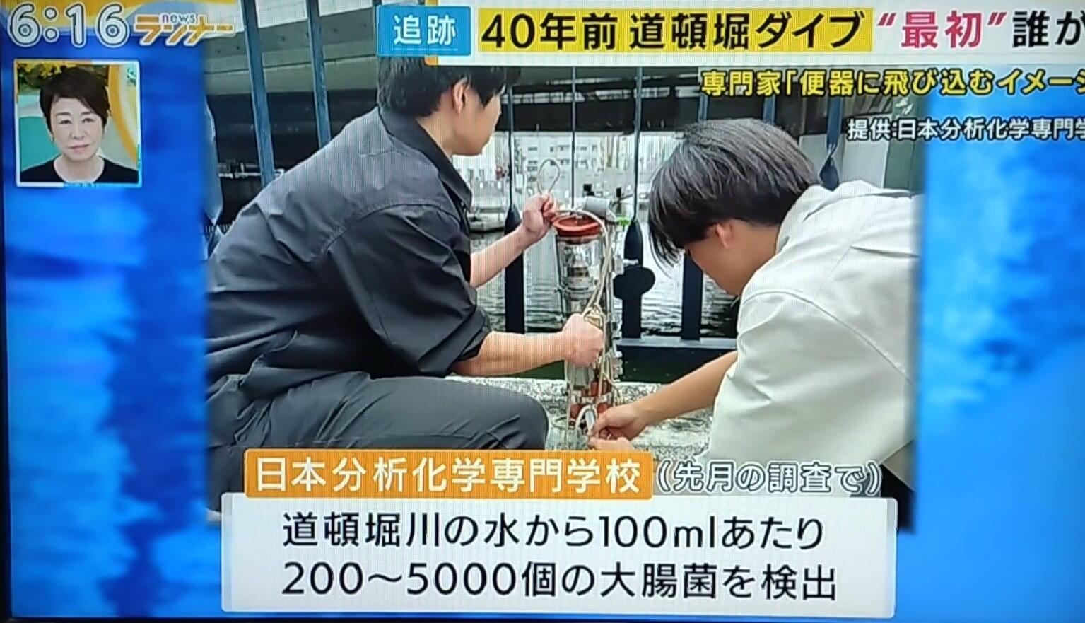 ちなみに、先日9月5日(金)には、NHK大阪から、同じく「道頓堀川の水質」に
