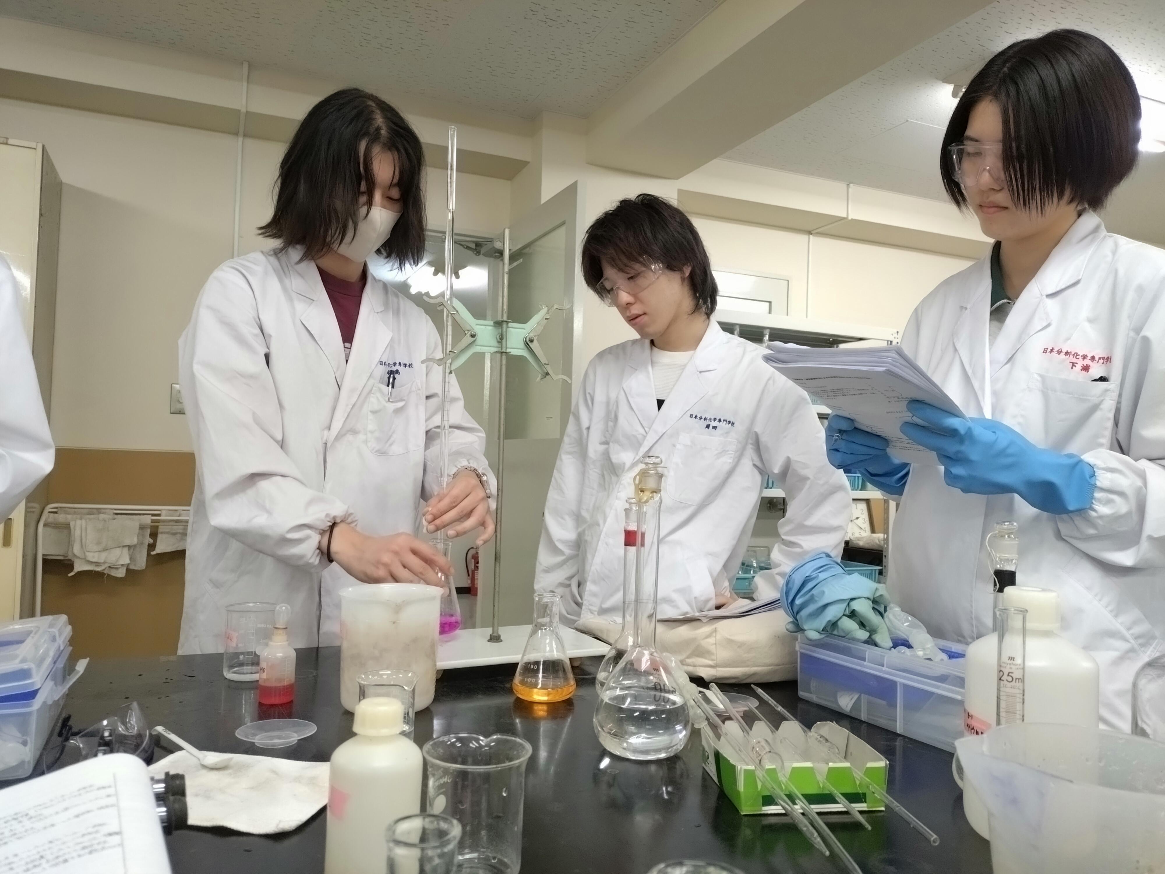 前期までの1年生の実験では、基礎化学実験に加えて、目的の成分が「何か」を