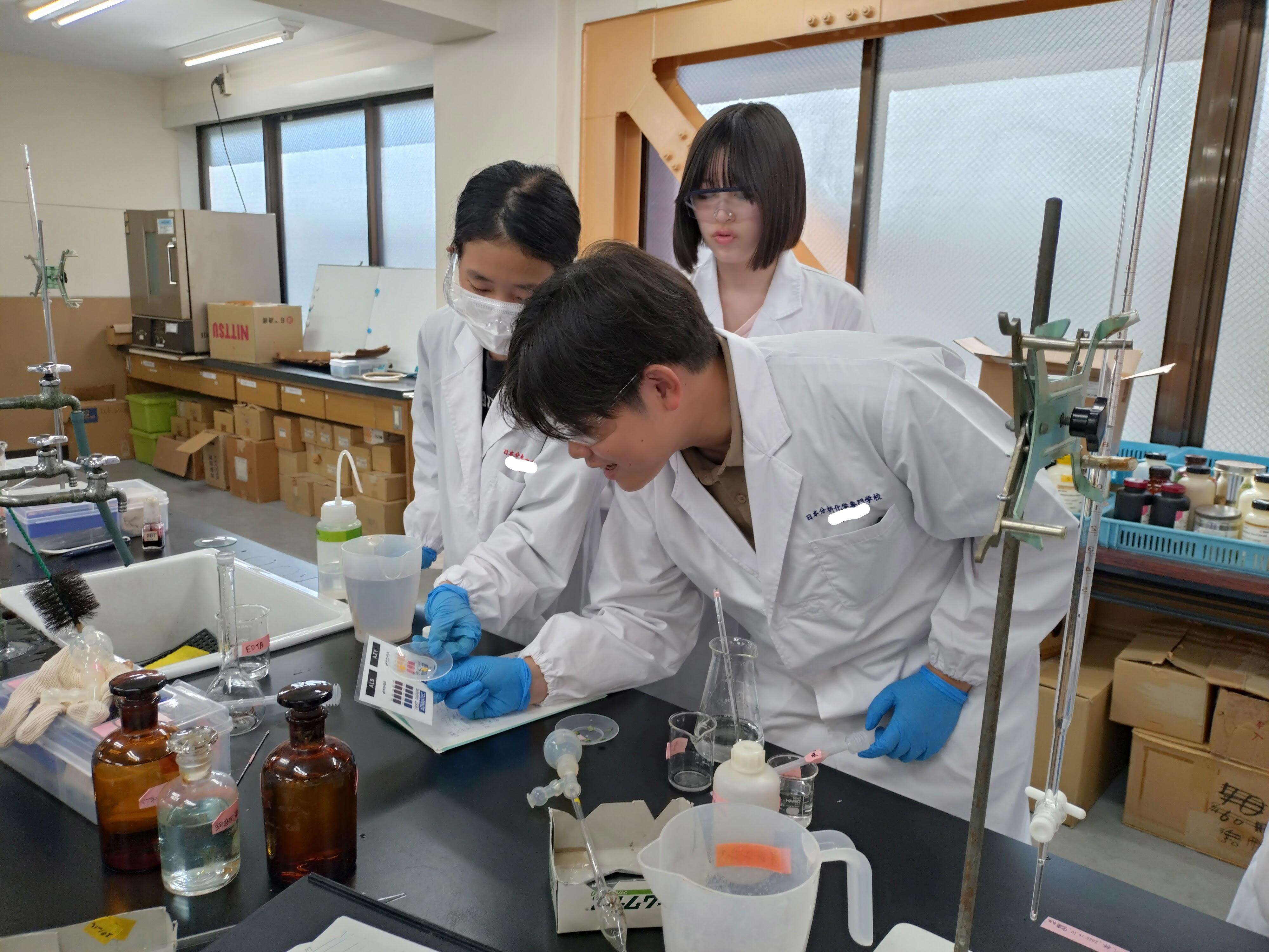 根気が必要な実験ですが、担当教員に相談したり、班員と協力し合いながら実験を進めます。