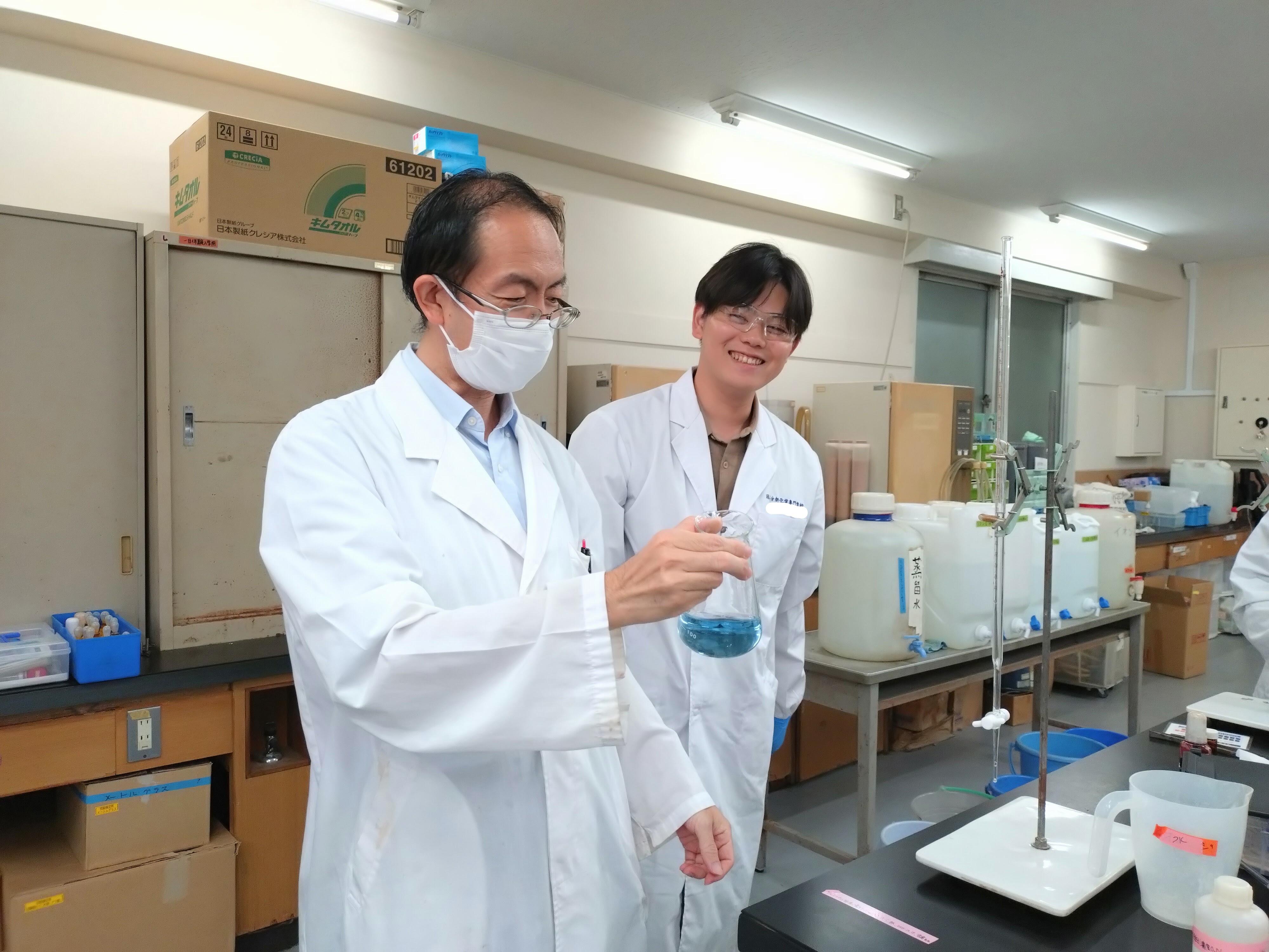 もう一方でコニカルビーカーを揺らしながら色の変化を見極める操作はまさに分析技術のひとつです。