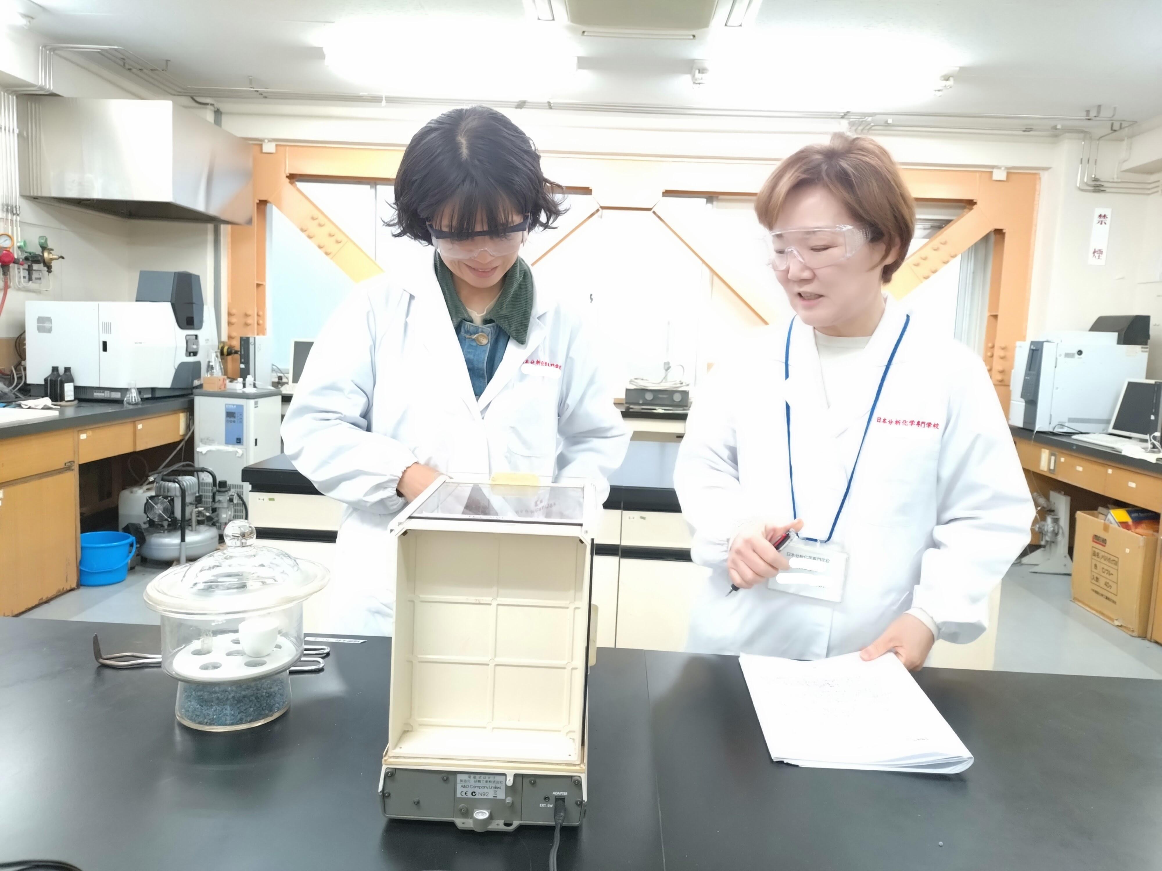 日本分析化学専門学校 HPの「せんせのブログ:【通信制】先端化学分析学科・第Ⅲ期スクーリング!~定量分析実験~(2025.11.16)」の写真から抜粋。