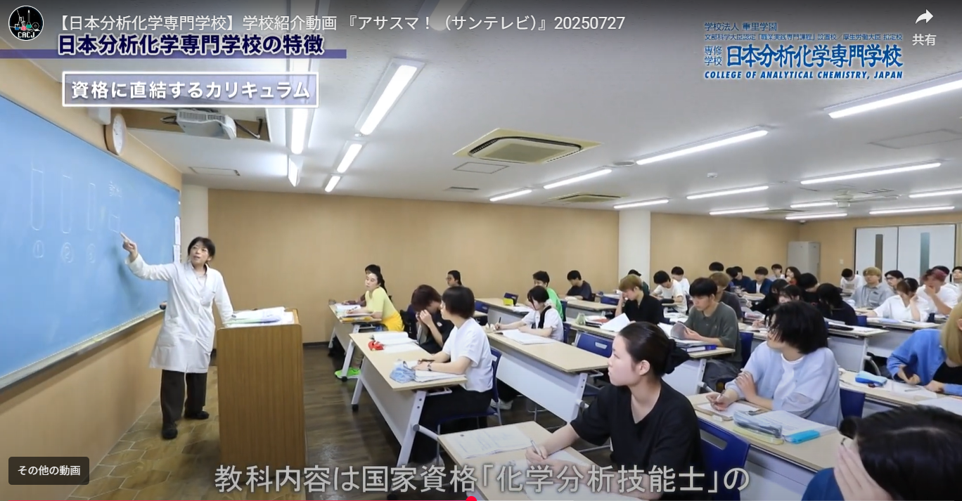 本校には平日に学校へ通学する学科のほかに、平日、仕事や大学に通っているまたは遠方のため通学が叶わないなどの方が入学をする通信制の「先端化学分析学科」というのもあります。