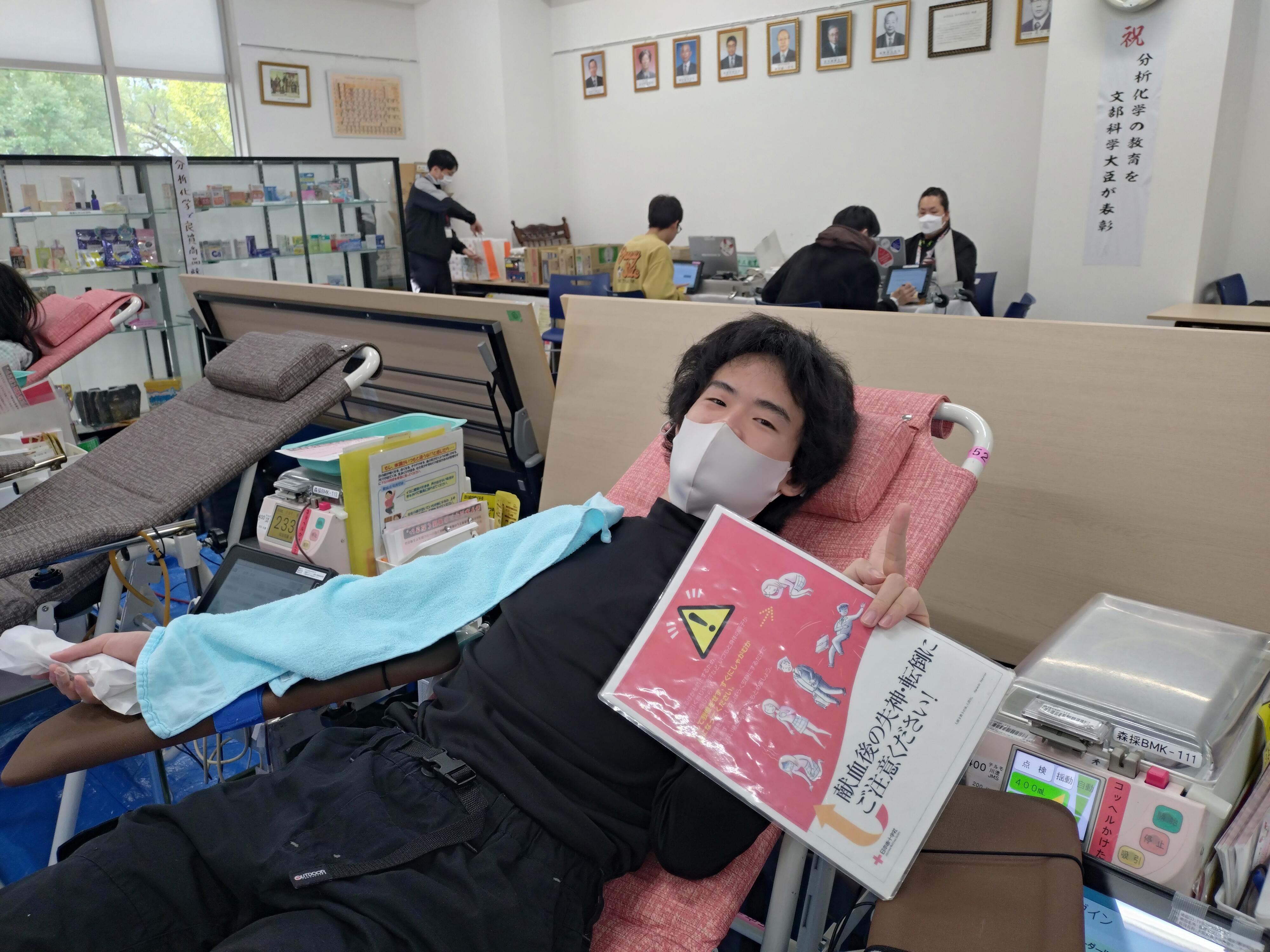 コチラは2年環境化学分析学科のNくん。1年生のときから献血ボランティアに